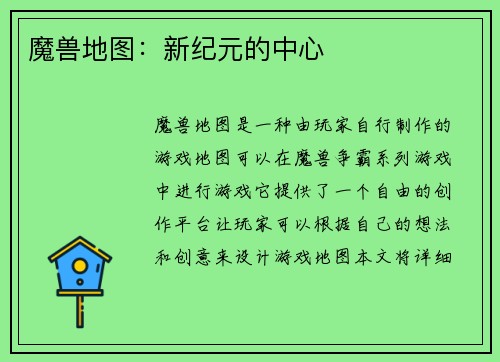 魔兽地图是一种由玩家自行制作的游戏地图,可以在魔兽争霸系列游戏中进行游戏。它提供了一个自由的创作平台,让玩家可以根据自己的想法和创意来设计游戏地图。本文将详细介绍如何将魔兽地图加入文章,以及如何利用魔...